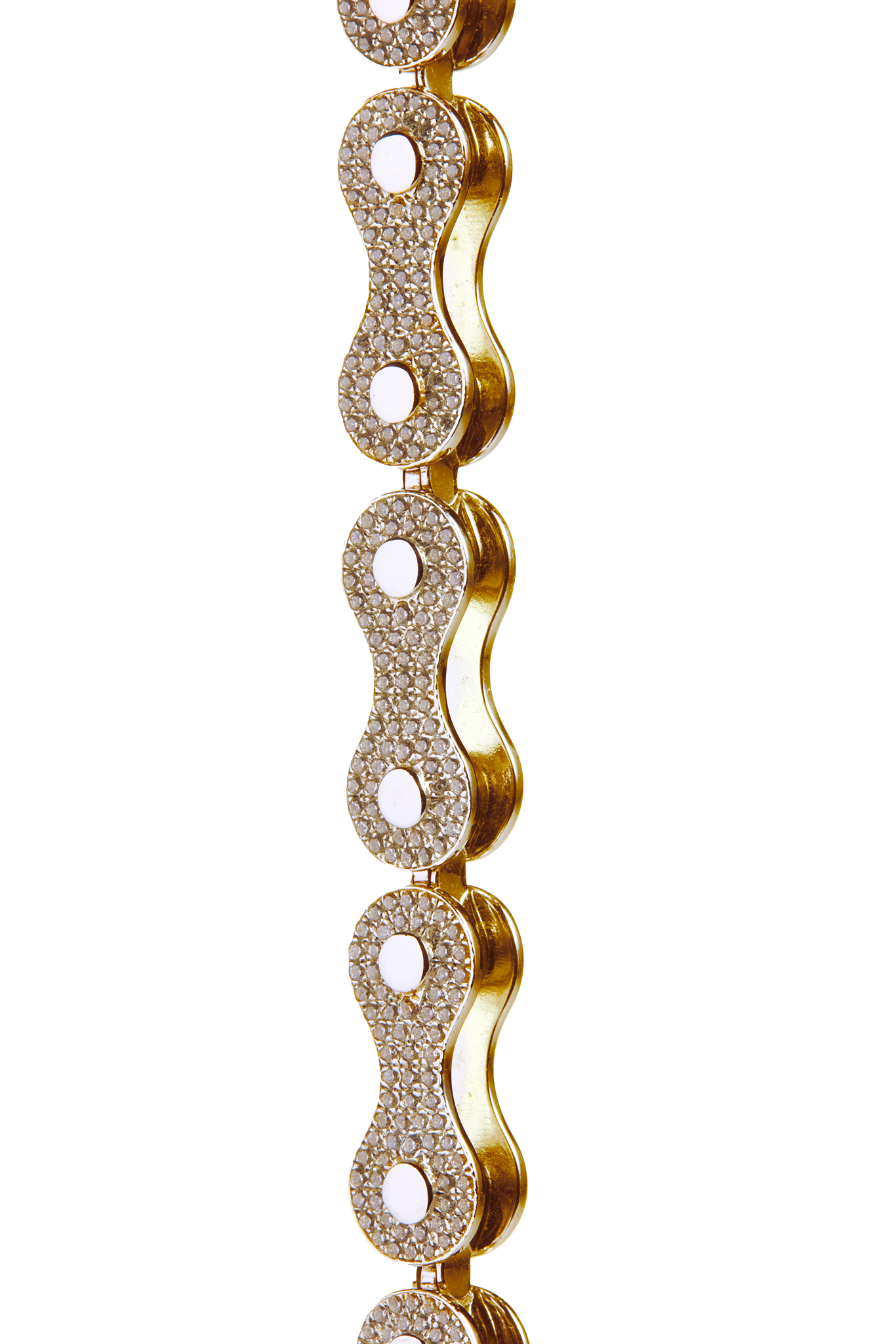Das Citybike Armband übersetzt das ikonische Design der Kette ins Handgelenk – aus 18 Karat Gold und voll besetzt mit G/VS-Diamanten. Die Form erinnert an ein Fahrradkettenglied, neu interpretiert als kraftvolles Statement-Piece mit urbaner Attitüde.