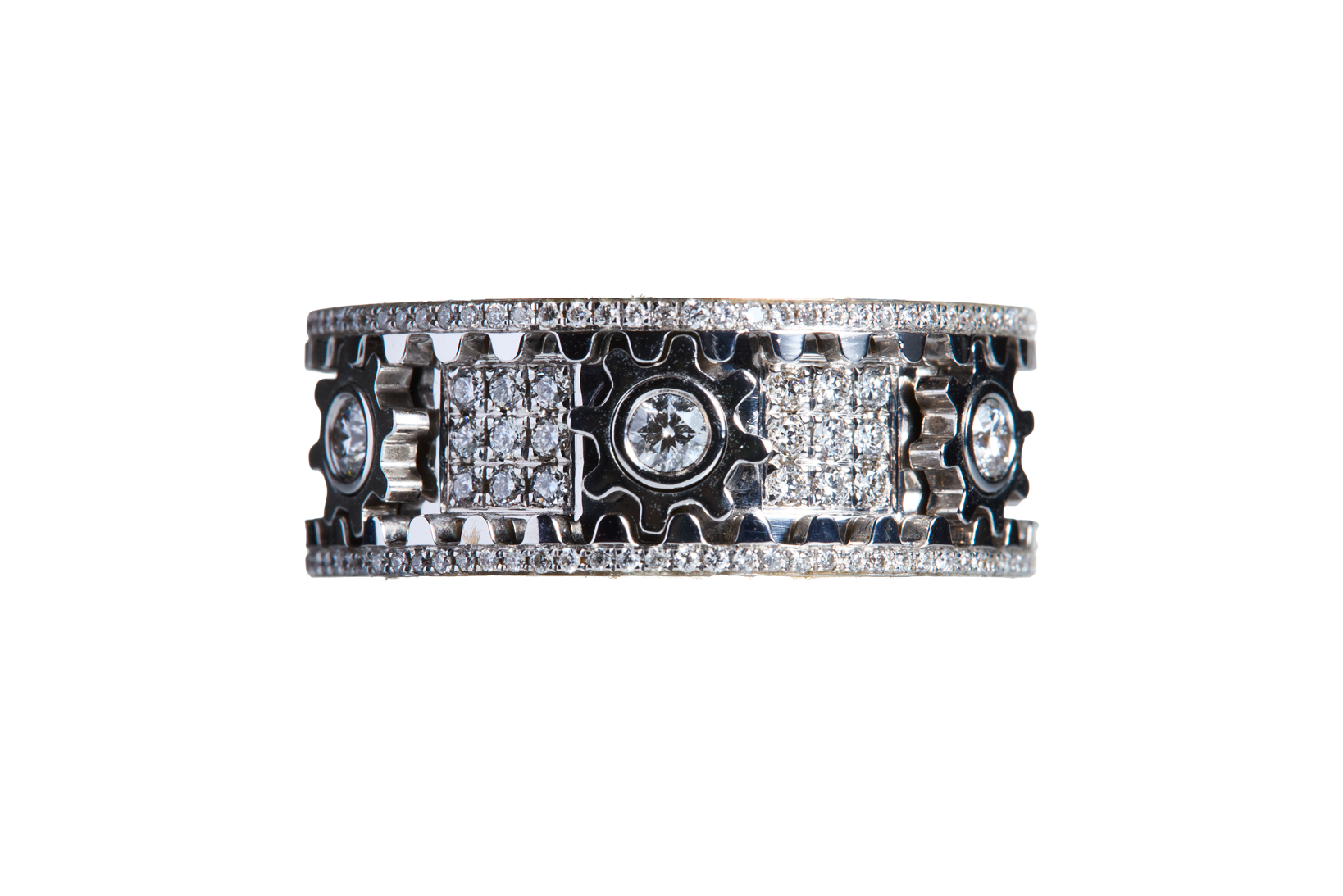 Der Mechanika Fidget Ring kombiniert innovatives Design mit spielerischer Funktionalität. Gefertigt aus 18 Karat Gold und besetzt mit 220 Diamanten, vereint er Luxus und Präzision. Das rotierende Zahnraddesign verleiht dem Ring eine dynamische Note und macht ihn nicht nur zu einem faszinierenden Schmuckstück, sondern auch zu einem interaktiven Erlebnis. Der Mechanika Fidget Ring ist die perfekte Mischung aus modernem Stil und technischer Raffinesse, ein Statement-Piece für alle, die Individualität und Bewegung lieben.